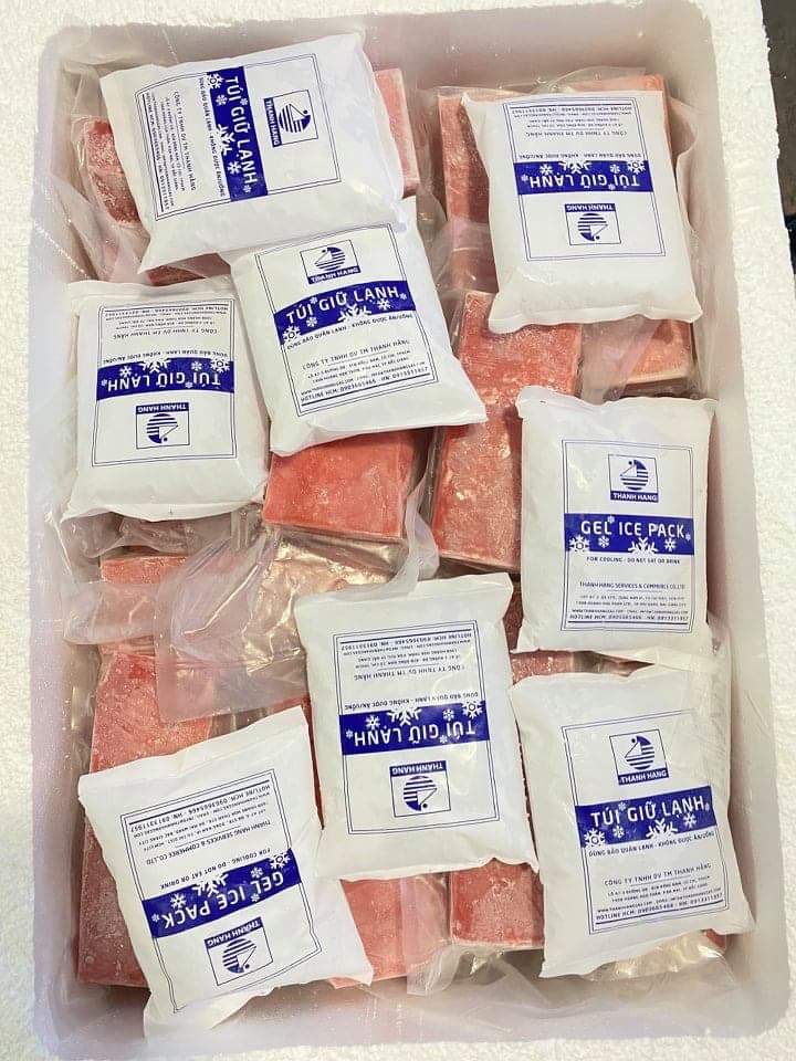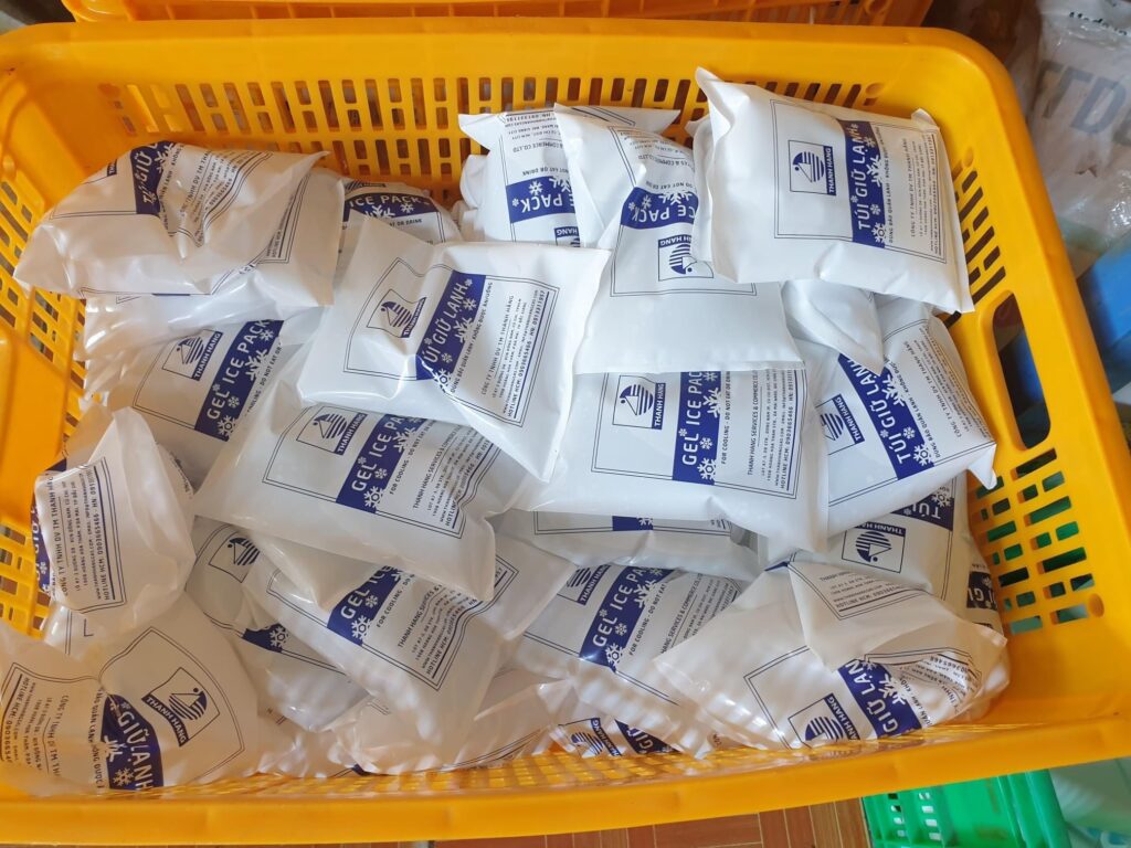 - Đá gel giữ lạnh(ice pack): gồm các thành phần đó là dung dịch gel được tạo nên từ hạt hút ẩm và nước theo tỉ lệ nhất định sau đó được đóng vào túi PE thực phẩm (túi được kiểm định chất lượng về ATTP)