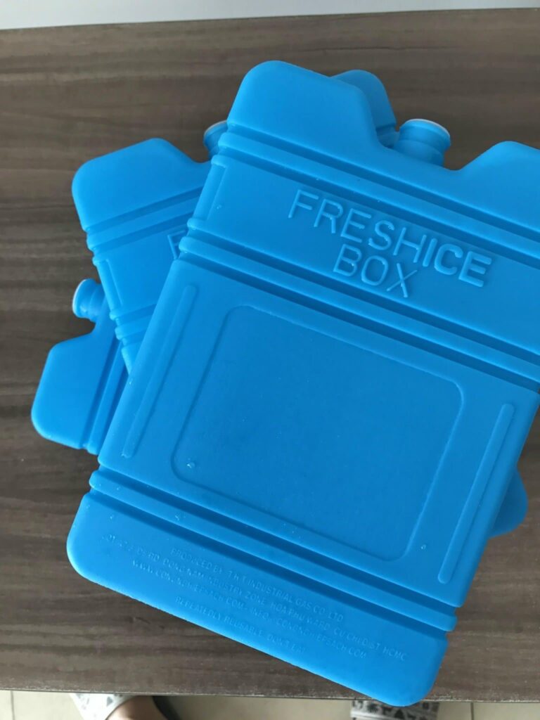 Hộp đá khô khi bạn mua về sẽ ở dạng lỏng chưa cấp đông vì vậy để sử dụng được bạn cần cấp đông hộp đá khô trong ngăn đông tủ lạnh từ 6-8 tiếng